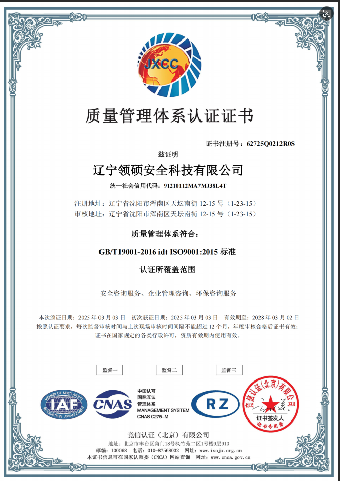 遼寧領碩安全科技有限公司位于遼寧省沈陽市渾南區天壇南街12-15號,注冊資金300萬。主要經營范圍為遼寧省范圍內的安全環(huán)保咨詢,生產安全事故應急預案技術服務、企業(yè)雙重預防機制建立、履職能力評估、企業(yè)科研項目安全部分服務等的技術服務機構?,F有員工12人,其中包括5名遼寧省級安全生產專家。成立于2022年4月18日,在盤錦市成立至今已經為30余家企業(yè)提供了安全環(huán)保技術咨詢。 業(yè)務范圍包括:技術服務、技術開發(fā)、技術咨詢、技術交流、技術轉讓、技術推廣,安全咨詢服務,環(huán)保咨詢服務,標準化服務,企業(yè)管理咨詢,科技中介服務,工程管理服務,特種作業(yè)...查看更多